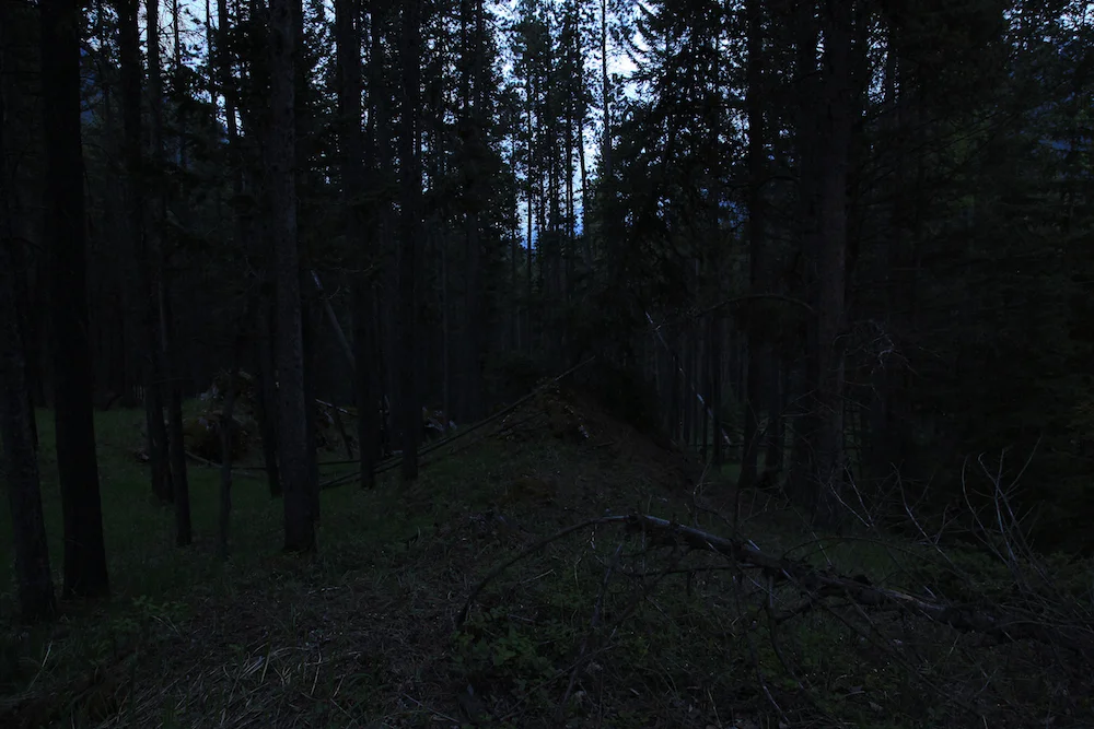 While staying in Banff National Park, I ventured into the forest each evening at dusk. I walked until I was afraid, at which point I took a photograph and retreated. (These photos comprise a small selection of the series. This work received support from the New Brunswick Arts Board, artsnb)